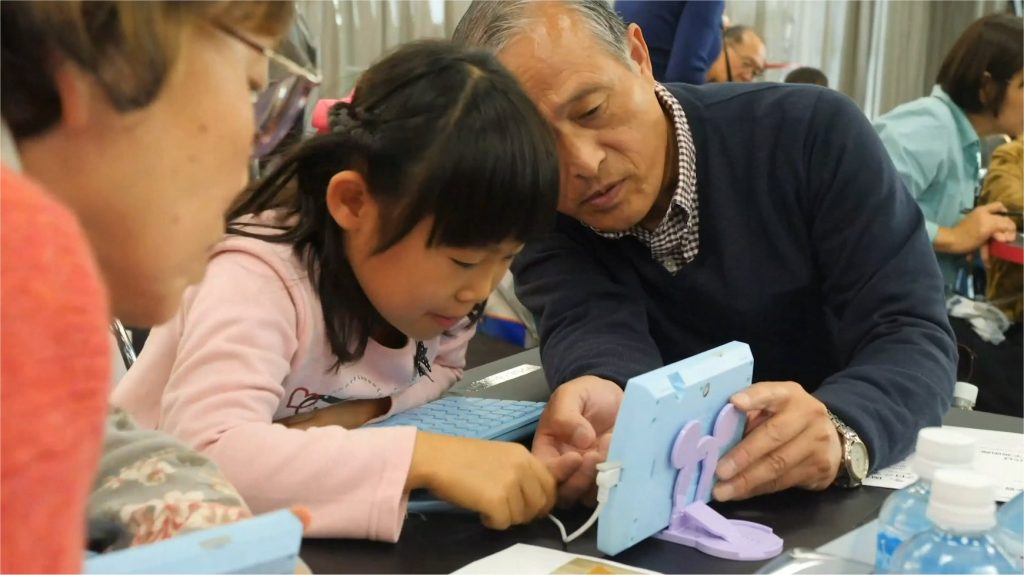 親子でのプログラミング教室というのは今までにも有りましたが、シニアと孫という切り口は有りませんでした。会場ではシニア世代の方もお孫さんもプログラミングでのゲーム製作に熱中する姿が見られたそうです。