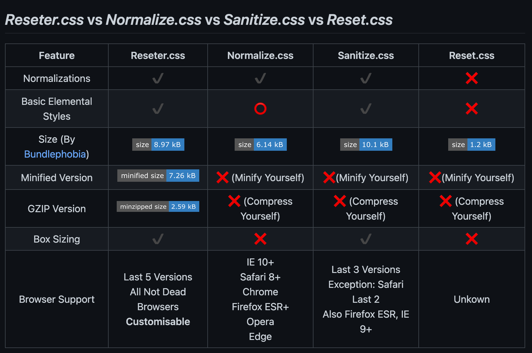 特に差が出ているのは BoxSizingの部分でしょうか。また、全てのブラウザに対応していると豪語しています。すごい。